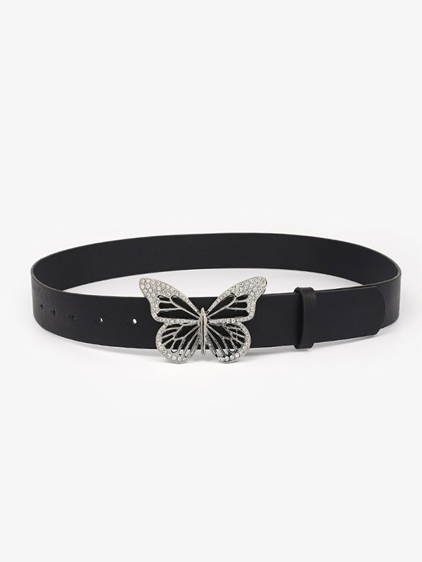 Rhinestone Butterfly Pu Leather Belt