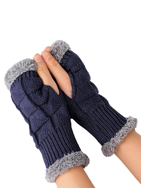 Fingerless Thick Warm Fleece Lining Knitted Gloves