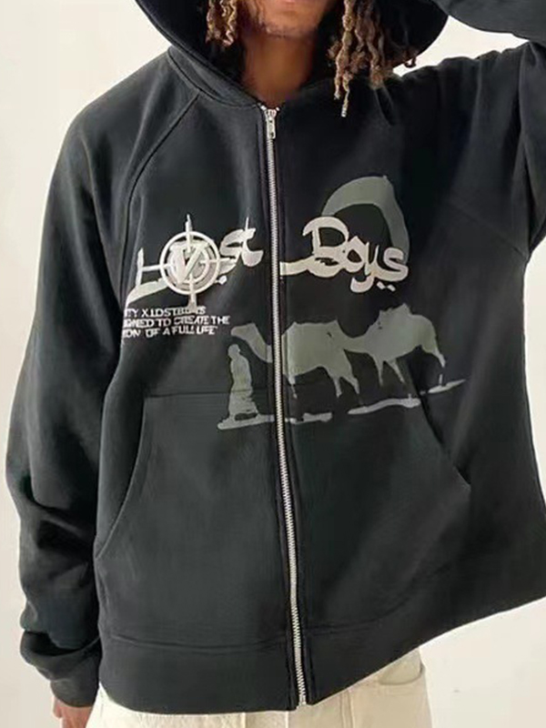 Men’s Dark Print Oversized Long Sleeve Hoodie