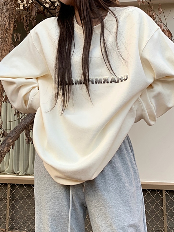 Preppy Contrast Color Letter Print V Neck Sweatshirt