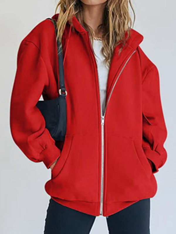Solid Color Stretchy Hem Loose Oversized Hoodie