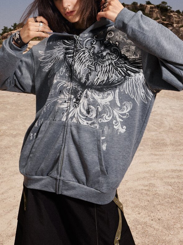 Street Spider Embroidered Devil Styling Oversized Hoodie