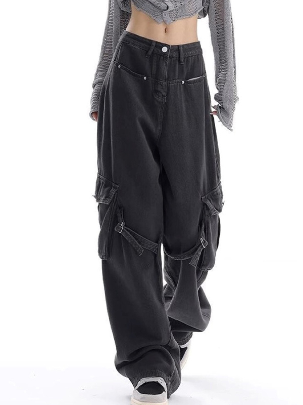 Men’s Vintage Wash Denim Loose Cargo Jeans
