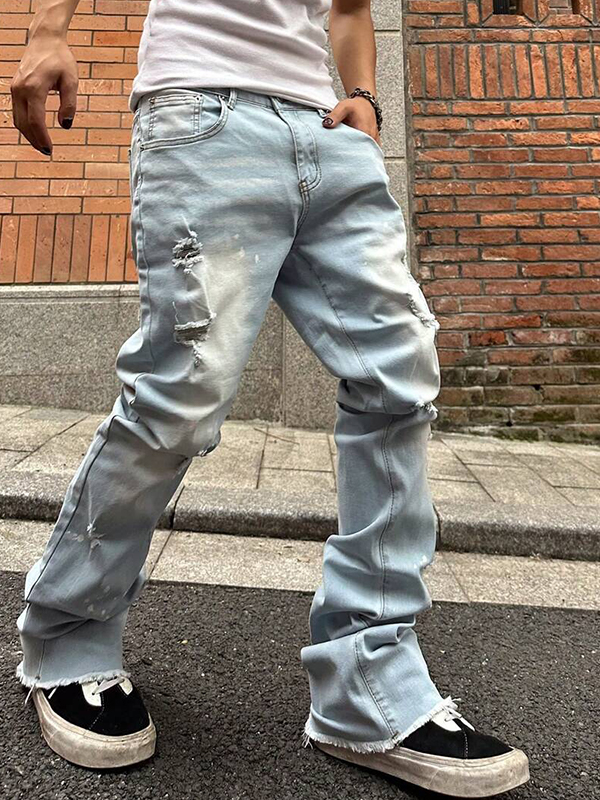 Street Distressed Ruched Splice Low Rise Flare Jeans