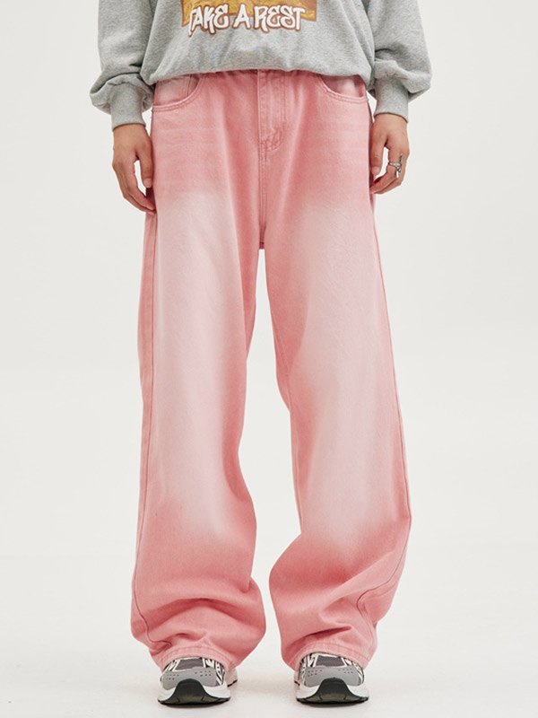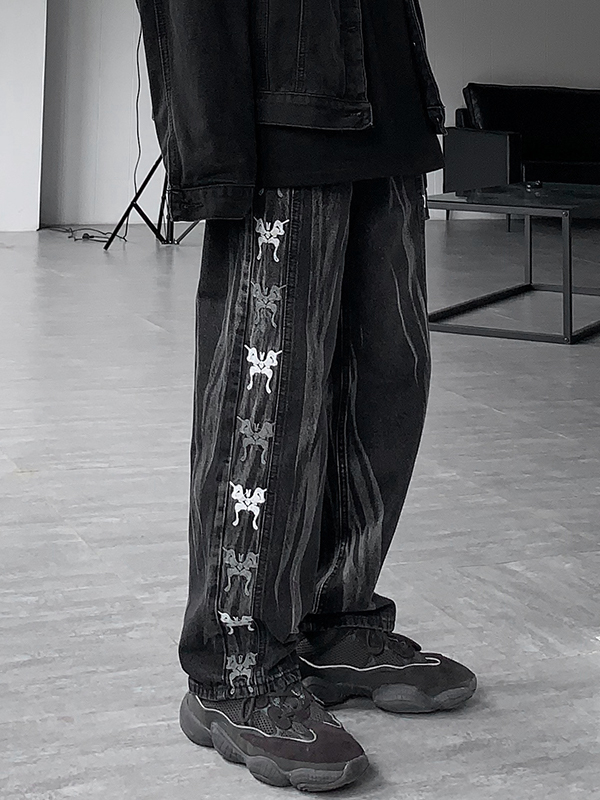 Men’s Vintage Ombre Butterfly Print Straight Leg Jeans