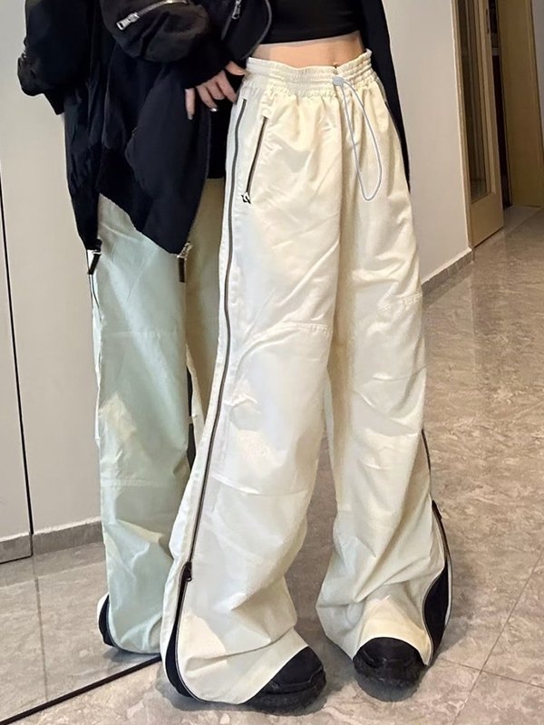 Men’s Solid Splice Bound Feet Wide Leg Pants