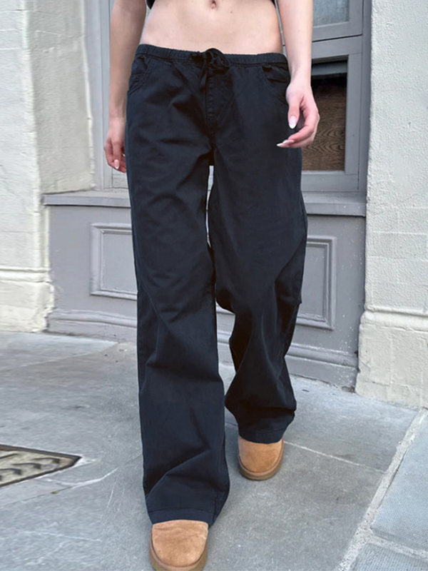 Men’s Wash Ripped Drawstring Straight Leg Pants