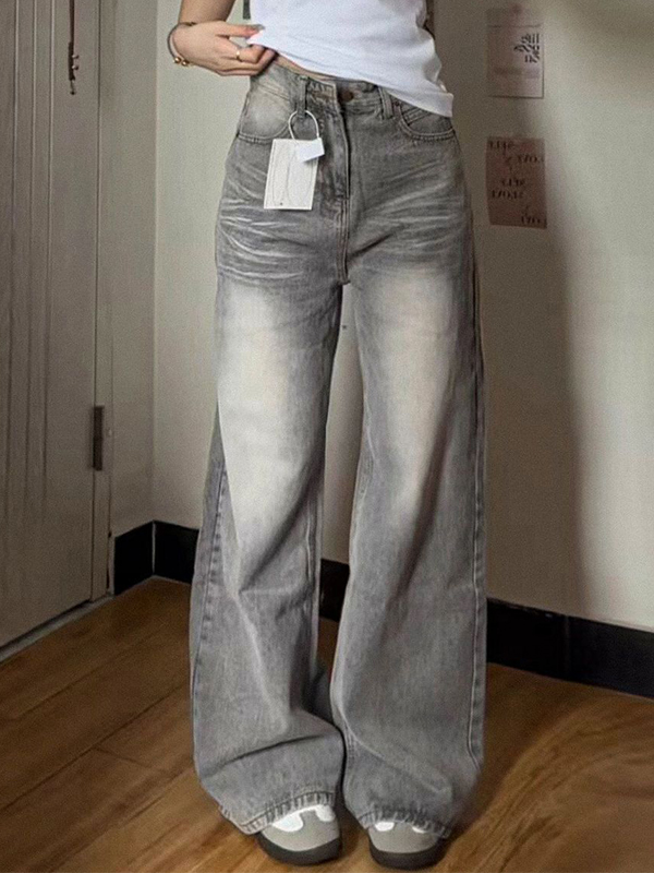 Straight Loose And High-Waisted Design Boyfriend Jeans