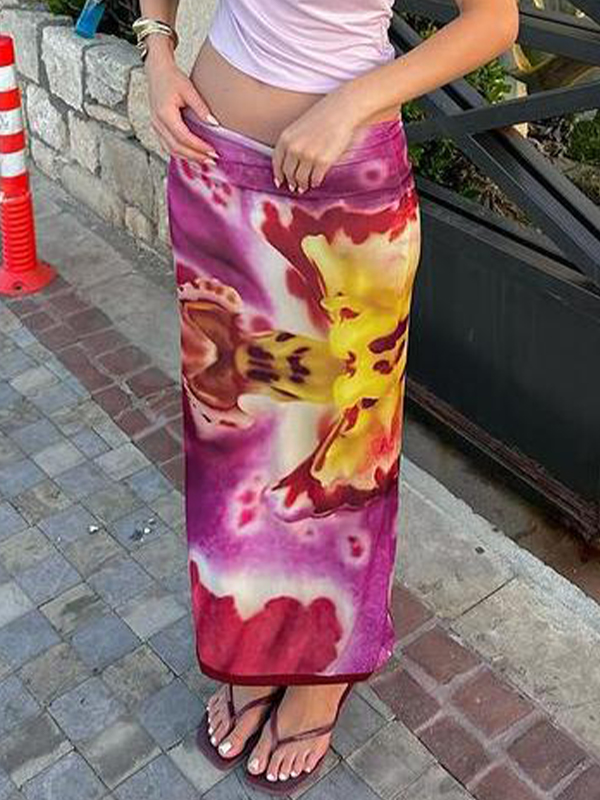 Floral Print Shoulder Maxi Skirt