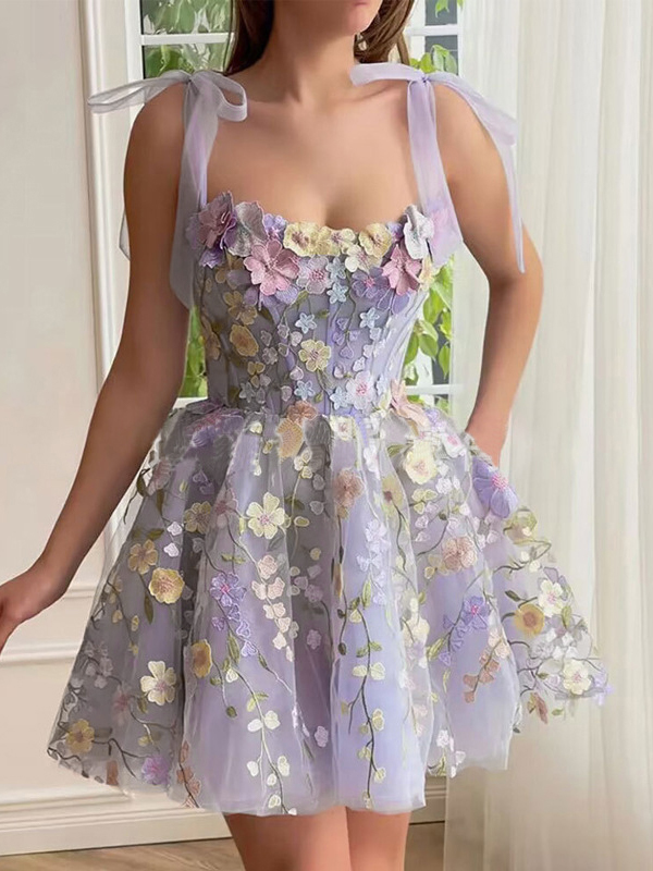 Three-Dimensional Flower Embroidery Hip-Covering Sexy Suspender Belt Mini Dress