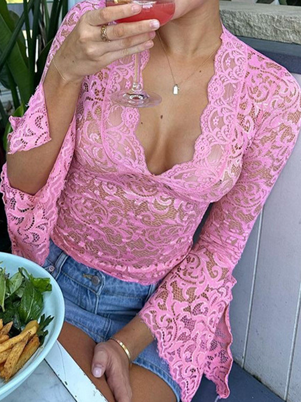 Lace Mesh Splice Lettuce Hem Bandeau Top