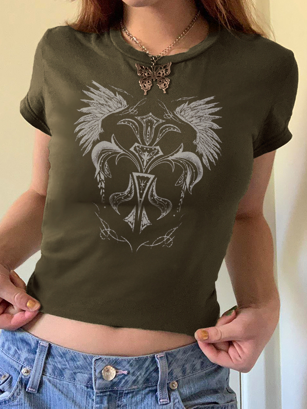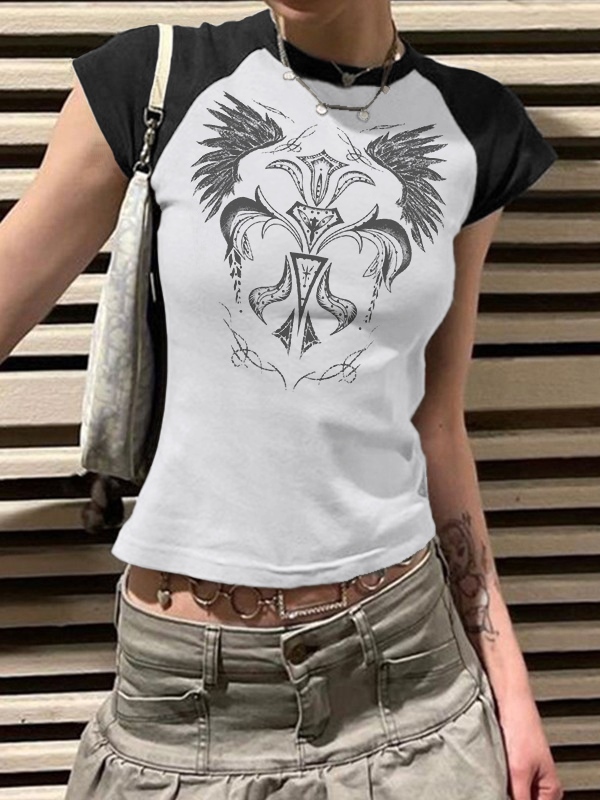 Vintage Wing Print Raglan Short Sleeve Tee
