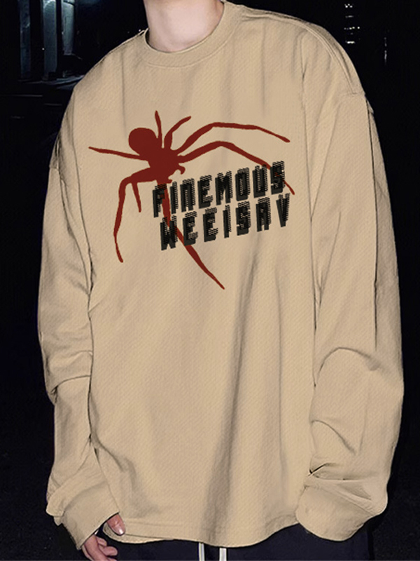 Cartoon Rhinestone Print Off Shoulder Lace Trim Long Sleeve Tee