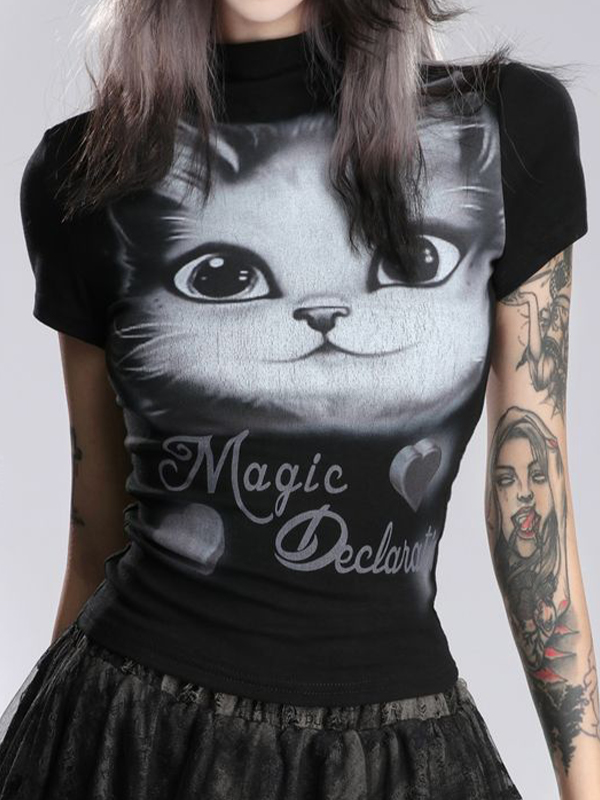 Cat Print Short Sleeve Tee