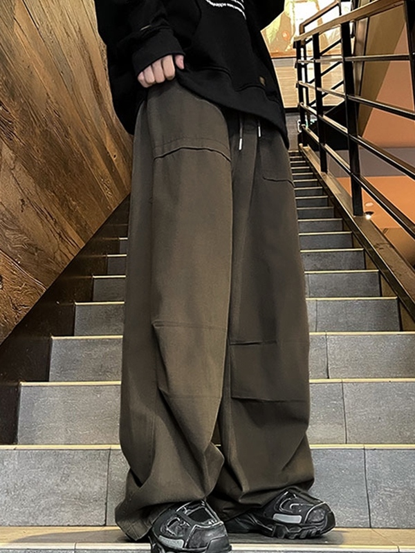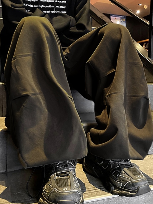 Men’s Solid Splice Bound Feet Wide Leg Pants