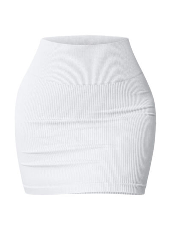 Solid Ribbed Elastic High Rise Bodycon Mini Skirt