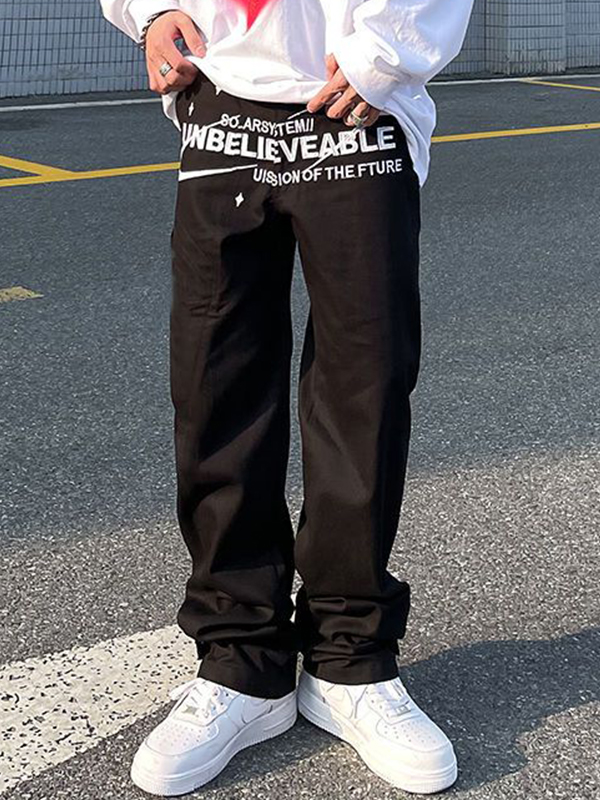 Men’s High Street Letter Print Loose Jeans